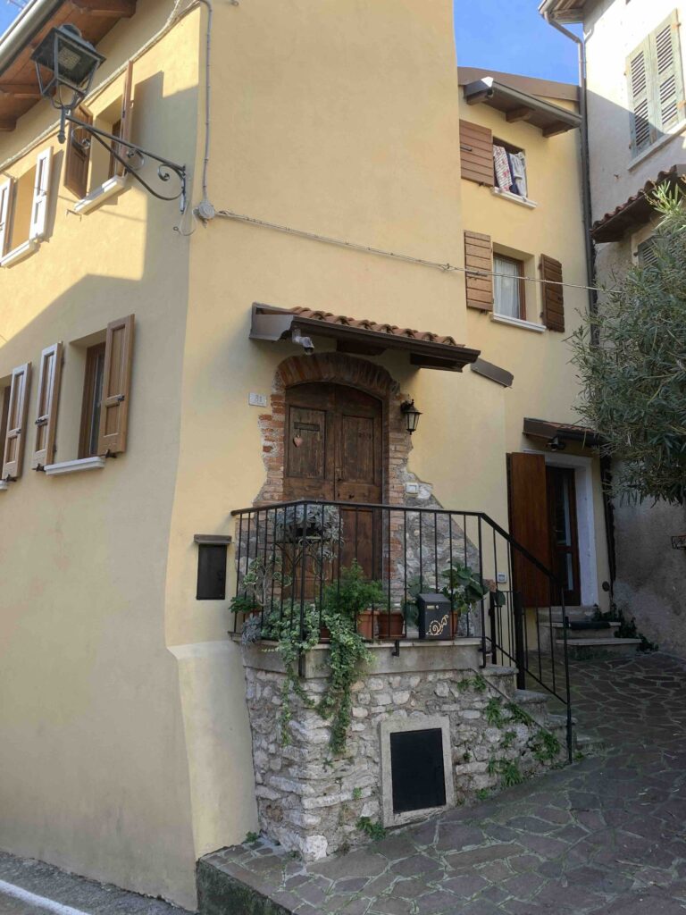 Nel romantico borgo di Campoverde di Salò in una tranquilla zona residenziale, Agenzia Immobiliare Fasanella propone in Vendita una casa, nel centro storico, con giardino con muri in pietra a vista su due lati e rete metallica con siepe sull’altro lato, comodo accesso carraio. La casa è disposta su tre piani con adiacente un grande porticato pavimentato in cotto con barbecue. L’immobile è così composto: piano terra, ingresso con zona giorno, pranzo, cucina, un servizio e comoda scala di accesso ai piani superiori; il primo e secondo piano sono divisi in quattro unità abitative, tre delle quali composte da due camere con bagno completo, la quarta composta da un ampio monolocale con bagno. Tutto il piano terra e il giardino attualmente sono in comune alle quattro unità abitative. Le finiture sono le seguenti: pavimenti in cotto in tutto il piano terra e le scale, nelle camere in legno e nei bagni in ceramica; impianto d’allarme; serramenti in legno con vetri doppi e zanzariere, ante esterne in legno, portoncino d’ingresso semiblindato; riscaldamento con pannelli elettrici. Al secondo piano soffitti in legno. La vista è sulle case del centro storico di Campoverde e, dall’ultimo piano, si intravede il lago e il Monte Baldo. Giardino pianeggiante con impianto di irrigazione. Immobile molto interessante sia come casa privata, sia da gestire come B&B o per una residenza in co-abitazione.